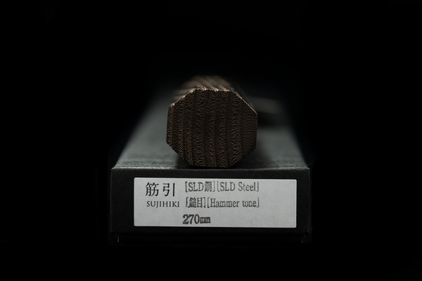 "Azumagata" translates directly to "Eastern style," meaning, in this case, that it is a subtle variation on the nakiri originating from the Tokyo area, i.e. the East of Honshu. This series of Toki knives features an SLD (semi-stainless) core with soft stainless cladding. Semi-stainless knives are generally easier to care for than carbon steel knives, but do require some additional care, making sure to keep them clean and dry when not in use, and wiping periodically when cutting acidic foods. They are just less reactive than carbon steel knives. They will, however, form a patina. We recommend Flitz to clean off any light rust (or patina, if you don't like it) as soon as you see it (you can leave the patina if you don't mind it). SLD is known for good edge retention, toughness and durability, and relative ease of sharpening when compared to many stainless steels.