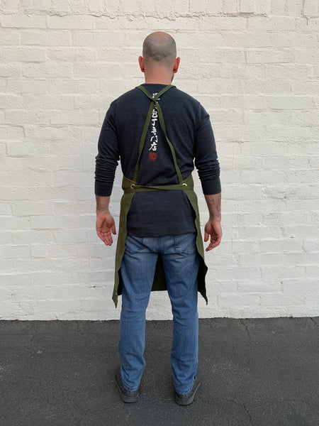 • Made from a medium-to-light weight 55% Hemp / 45% Organic Cotton Canvas, this apron is environmentally friendly, anti-microbial, and ergonomically designed. Organic cotton is grown without the use of harmful chemical herbicides and pesticides that would otherwise create run-off and contaminate the water supply for our oceans, our drinking water, and our food. Organically grown cotton combined with the anti-microbial, sustainable, and fortifying properties of hemp create a health-conscious and extremely durable apron. In addition, by committing to only using a dual cross-back strap design, our apron keeps your shoulders back and your back straight to keep you comfortable and pain-free throughout your workday, night or anytime in between.