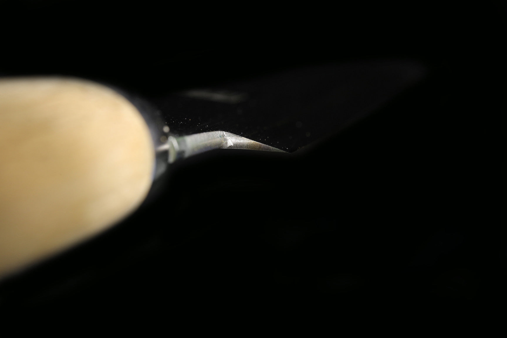 You will notice that in between the softer carbon steel and harder High Speed Steel cutting edge, there is a tiny bit of copper.  This was a method of cladding that was used long ago in Japan.