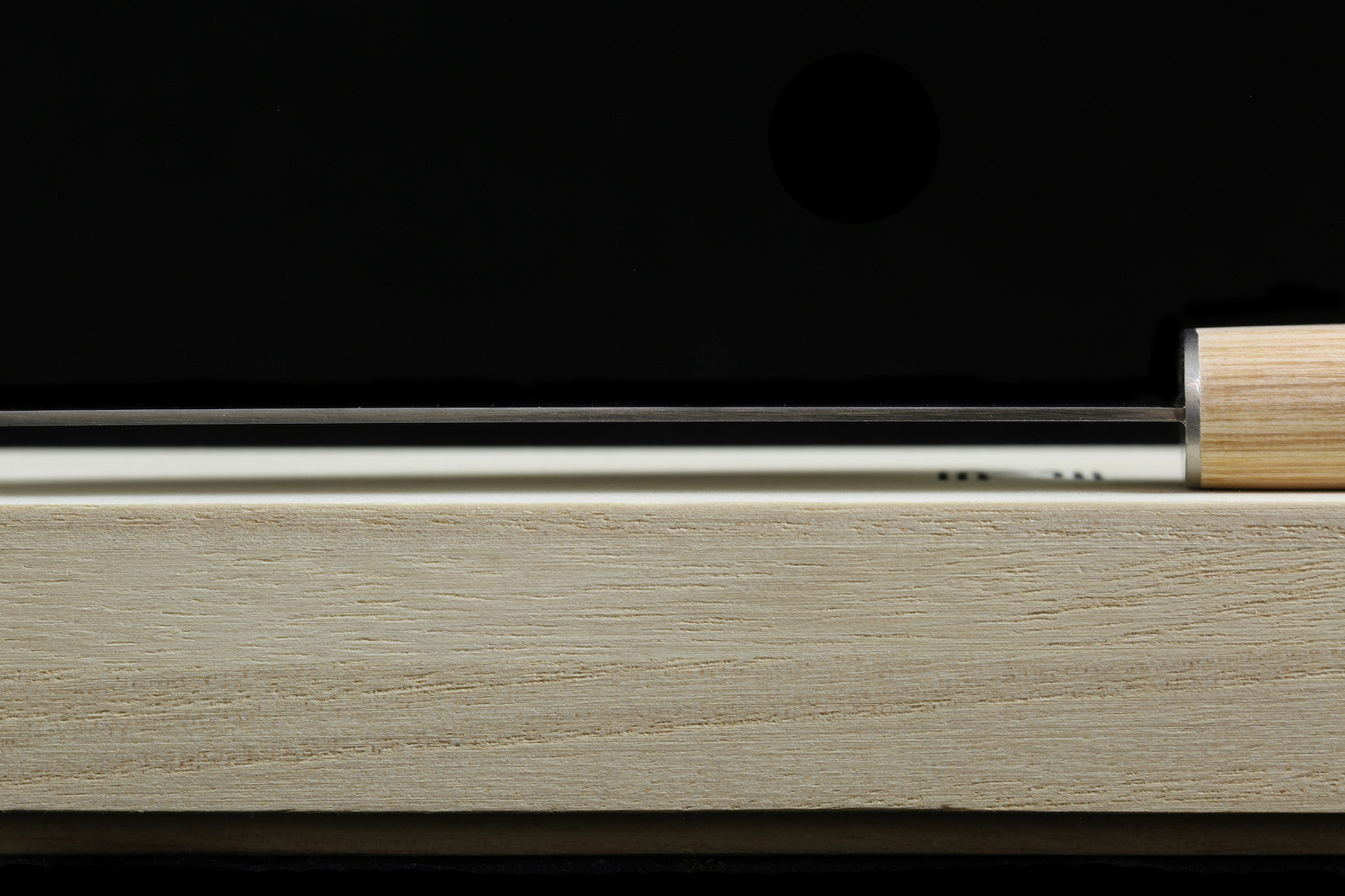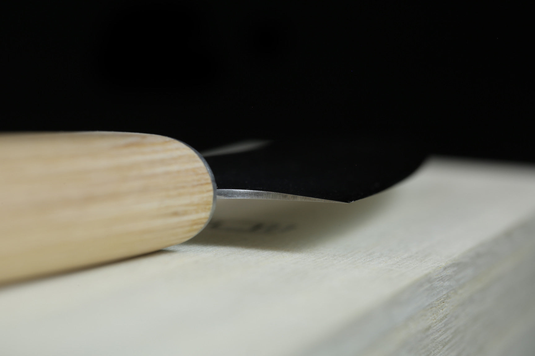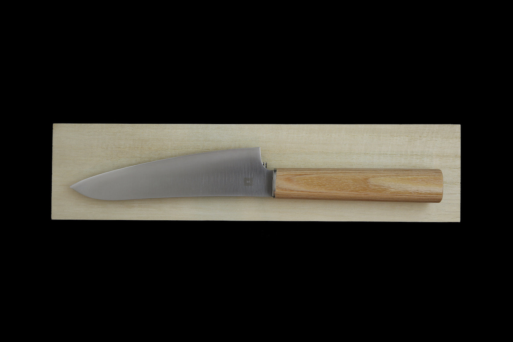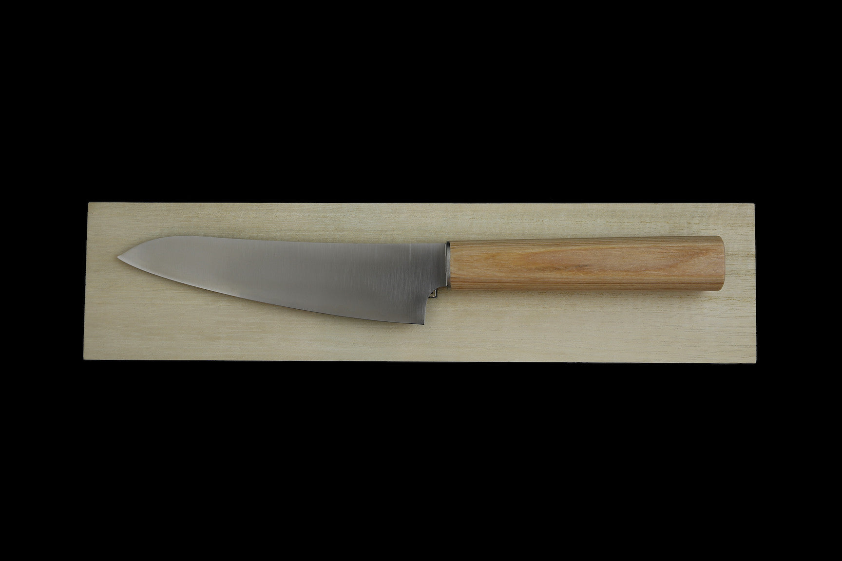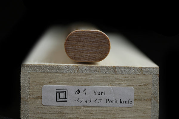 The Yuri series are extremely thin stainless steel knives. The core steel is AUS-8 at about 58-59 hrc. The fit and finish is very nice, and their more petit size makes these great for home cooks or chefs looking for something for smaller tasks or tighter spaces. When I say these are thin, they are VERY thin... both at the spine and behind the edge.
